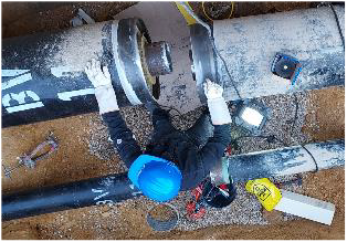 Préparation pour la soudure des tubes de 16 mètres de longueur